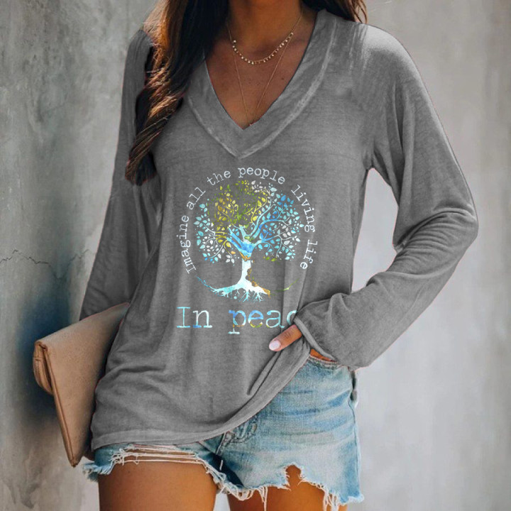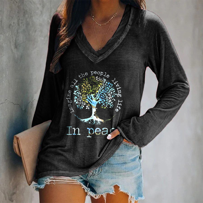 / Imagine All The People Living Life In Peace Printed Women’s T-shirt